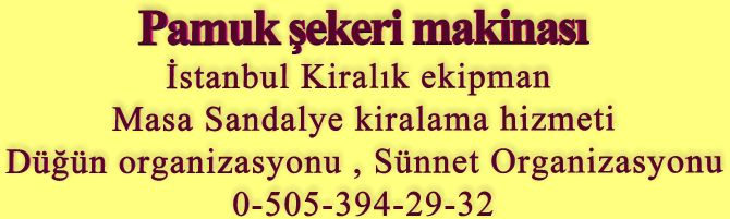 istanbul ekipman kiralama - İstanbul düğün organizasyonu ve sünnet düğünü Mısır patlatma makinası kiralama  istanbul ekipman kiralama - İstanbul düğün organizasyonu ve sünnet düğünü Pamuk şekeri makinası kiralama  istanbul ekipman kiralama - İstanbul düğün organizasyonu ve sünnet düğünü Deri makam koltuğu kiralama  istanbul ekipman kiralama - İstanbul düğün organizasyonu ve sünnet düğünü Kırmızı halı yolluk kiralama